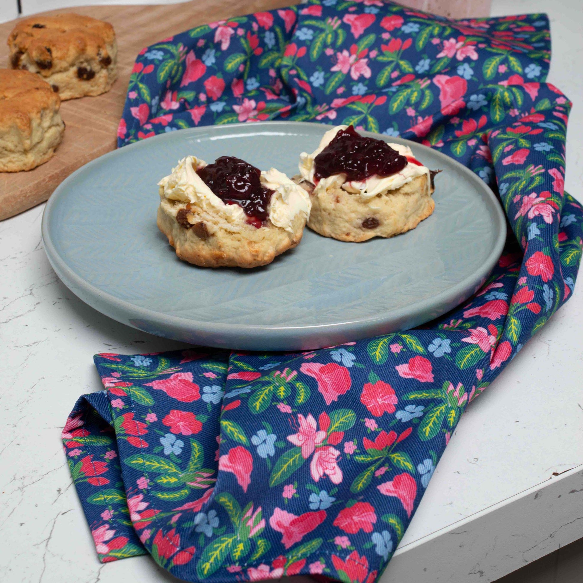 Our blossom navy tea towel is a playful take on a traditional ditsy floral. Inspired by the first flowers in bloom, representing hope & new life, our spring time kitchen towels feature our signature contrasting and joyful colours and would be the perfect accompaniment to a navy, green or grey kitchen decor.