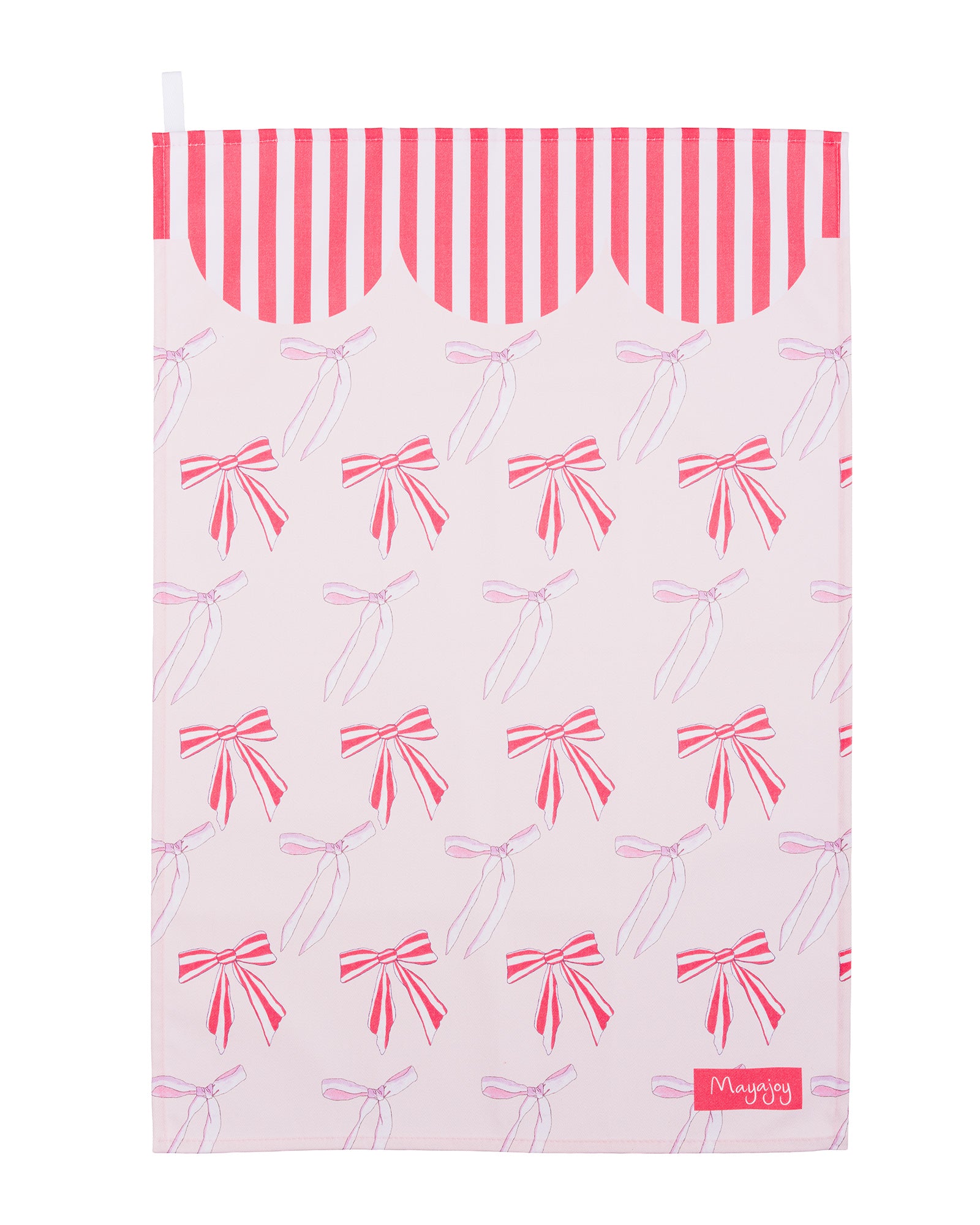 Add a touch of playful nostalgia to your festive kitchen with our Christmas Bows tea towel. Inspired by the joyful and whimsical bows that dress our favourite gifts, this design celebrates the simple pleasures of the season. The gathering, giving and decorating with so much love.