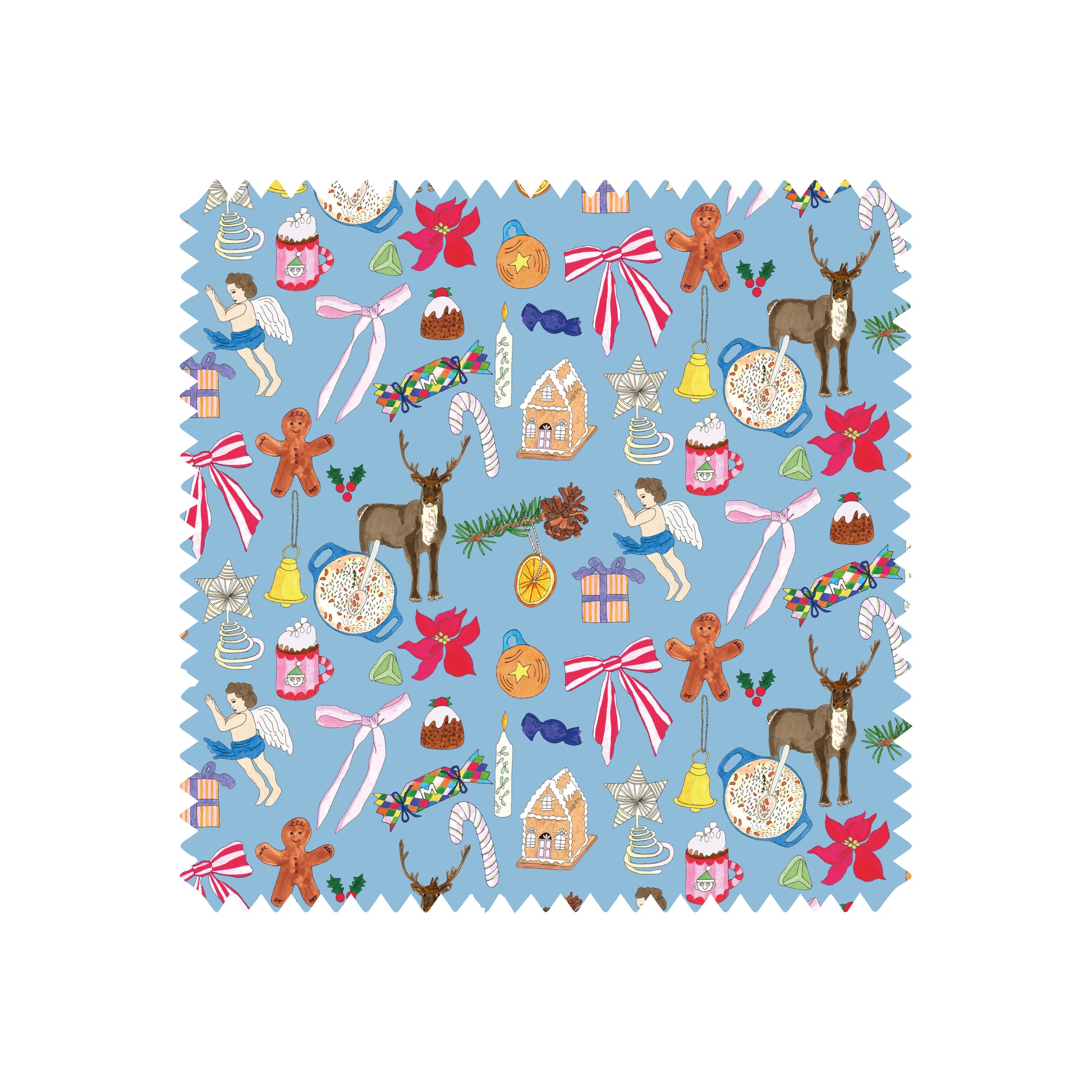 Inspired by the warmth of our childhood celebrations, this limited edition design brings together all the details that make the season special- gingerbread houses, angels, whimsical bows and a little nod to our Jamaican heritage, with an obligatory serving of rice and peas. Every motif tells a story and is woven with love and nostalgia.