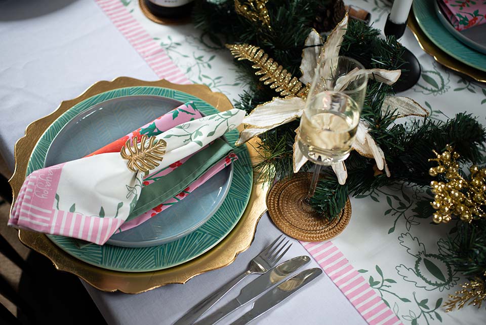 Create a show stopping centre piece by adding a Christmas table runner to this year's tablescape.