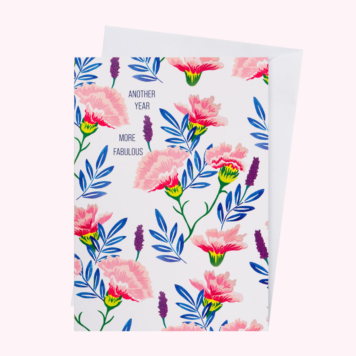 Our fabulous carnation card features our hand painted carnation design for fabulous birthdays.