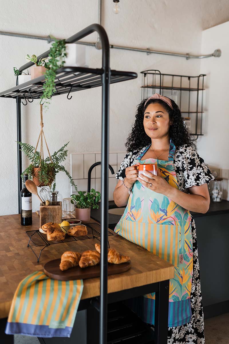 Made from 100% cotton drill, it’s practical too, with a big front pocket for your phone or recipe cards, and adjustable straps so it fits just right. Whether your kitchen feels rustic or modern, Paradise Stripe adds that perfect pop of colour.