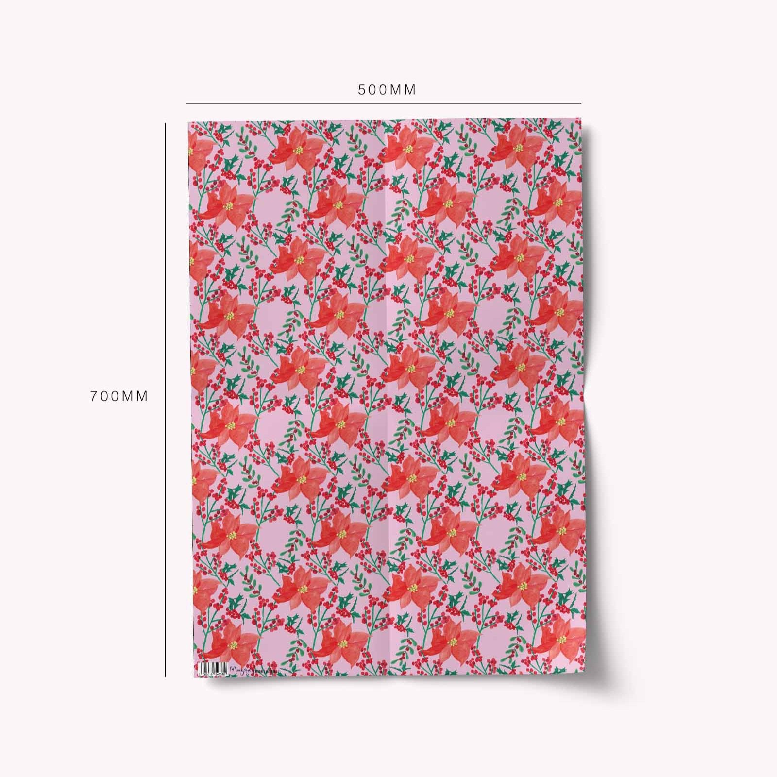 Pack of 2 luxury wrapping paper sheets, featuring a hand painted Poinsettia & winter foliage pattern. Each sheet is printed onto beautifully thick paper to compliment your gifts.